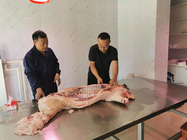 8月4日, 共和县绿丰藏香猪养殖专业合作社实施州级科技项目《杜野藏(黑)杂交商品代猪屠宰试验及肉质测定研究》,青海畜牧兽医职业技术学院王杰副教授等5人作为该项目技术支撑,主导本次屠宰试验并对生猪部分胴体肉质进行采样测定,为杜野藏(黑)三元商品杂交猪扩繁积累基础性生产数据,为延伸藏猪养殖产业链,有效解决藏猪养殖生长速度慢、肉质差、口感不佳的问题,王杰副教授特别邀请了中国畜牧兽医学会副理事长、甘肃农业大学动物科技学院院长滚双宝教授进行现场指导。另外,州科技局霍青局长等一行3人到场指导工作,并对绿丰合作社的工作给予了高度的评价。