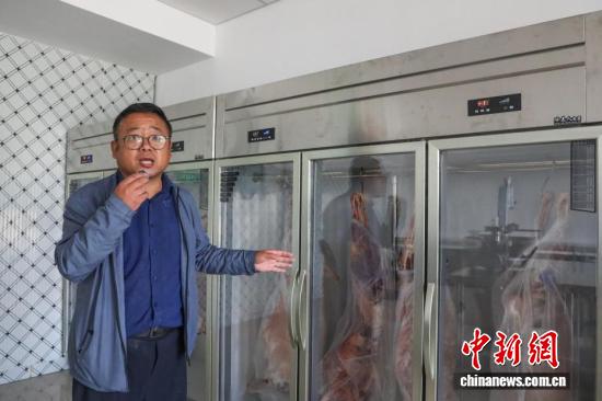 9月17日,共和县一家“光伏羊”销售商家展示冷冻储存的羊肉。