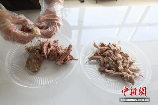 9月17日,共和县一家“光伏羊”销售商家展示煮好的羊肉。