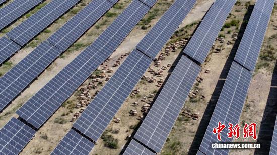 9月17日,航拍园区内的“光伏羊”。(无人机照片)