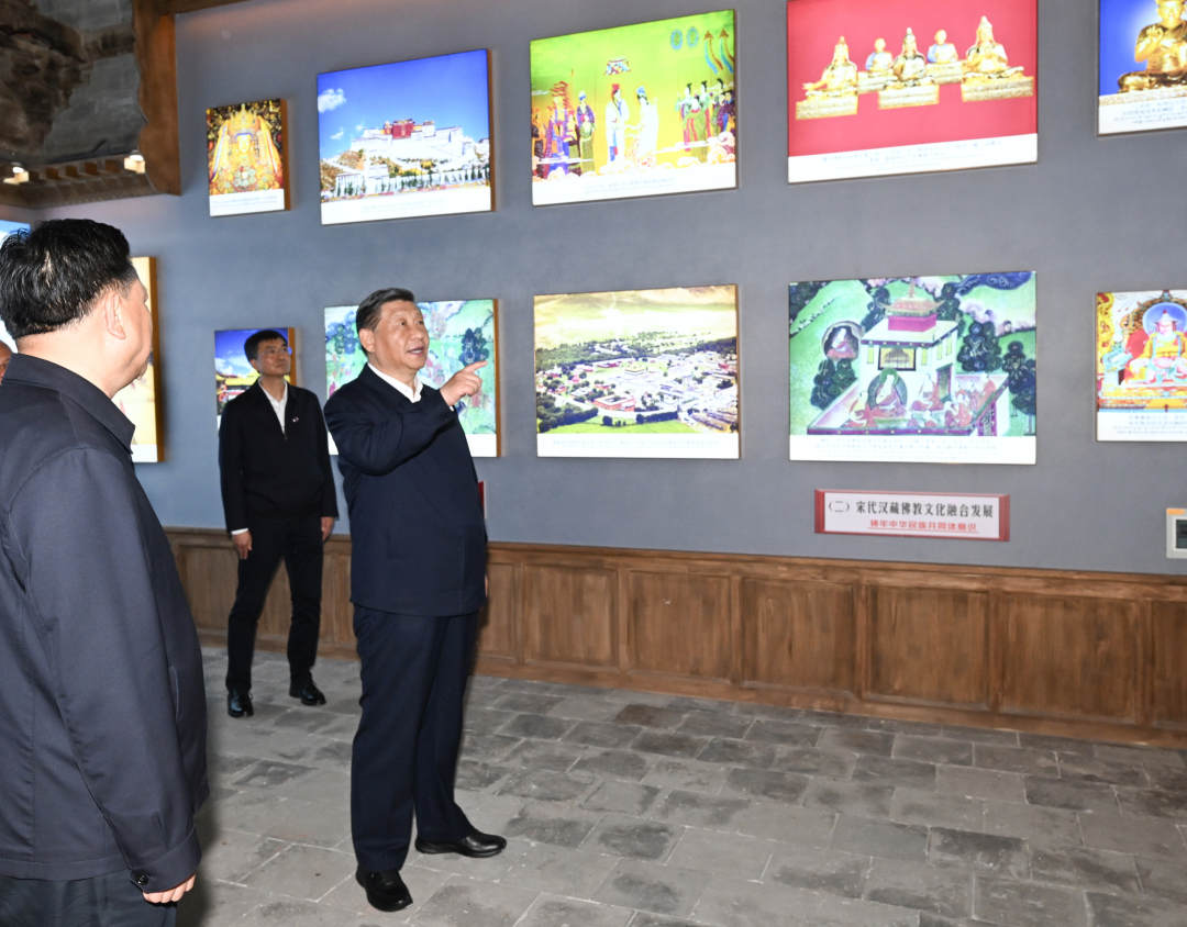 习近平在青海考察调研 来源: 发布时间:2024-06-19 15:48:31 浏览次数: 次 【字体:小 大】 18日下午,习近平总书记在青海省考察调研。他先后来到西宁市的果洛西宁民族中学和宏觉寺,了解当地深入推进教育工作东西部协作和对口支援、加强铸牢中华民族共同体意识教育和藏传佛教界弘扬爱国爱教优良传统、促进民族团结进步等情况。(杜尚泽)新华社记者 鞠鹏 谢环驰 燕雁 岳月伟 翟健岚 摄 分享到: 【打印正文】