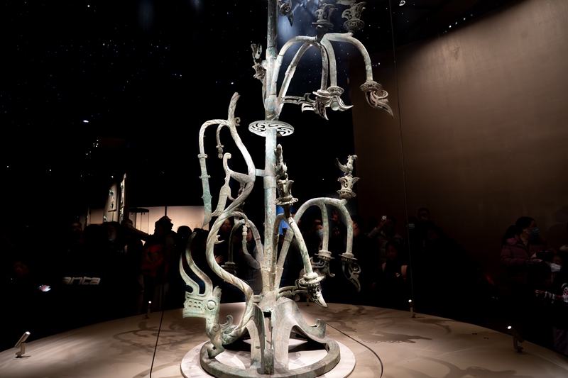 三星堆龙年“寻龙” 来源:新华社 发布时间:2024-02-10 09:06:27 浏览次数: 次 【字体:小 大】 1月26日拍摄的三星堆青铜神树,神树一侧,一条头上长角、昂首挺胸的“神龙”缘树逶迤而下,整条龙造型飘逸灵动又奇异诡谲。沉睡数千年,一醒惊天下。三星堆出土无数珍贵文物,其中龙的形象众多,或立于权杖之首,或蜿蜒于神树之上,或镌刻于青铜器身……这些文物印证了三星堆遗址所属的古蜀文明是中华文明的重要组成部分。在中国农历甲辰龙年第一天,一起到三星堆博物馆开启寻“龙”之旅。新华社记者 薛晨 摄 分享到: 【打印正文】