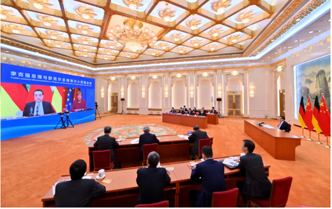 当天下午,李克强以视频形式与德国总理默克尔共同主持第六轮中德政府磋商。