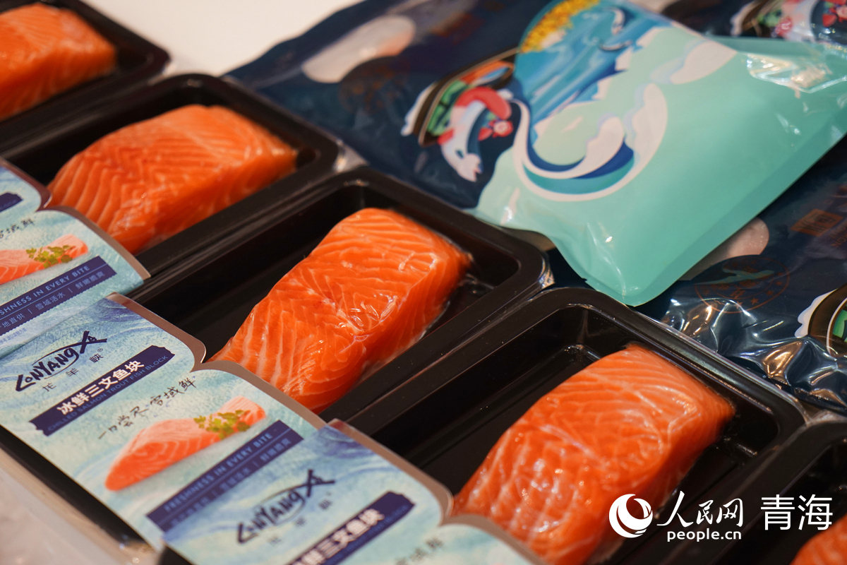 冷水鱼产业是世界杯哪里下赌注的优势产业,图为产自世界杯哪里下赌注的三文鱼产品。人民网记者 杨启红摄