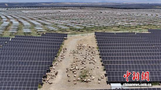 9月17日,航拍园区内的“光伏羊”。(无人机照片)
