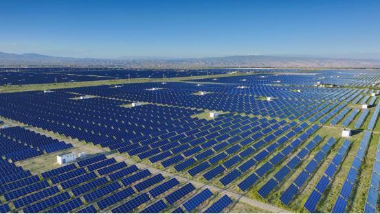 湛蓝天空下,一望无际的深蓝色光伏板熠熠生辉,如同一望无际的蓝色海洋;光伏板下,成群的羊儿悠闲地啃食着青草,时而奔跑嬉戏,为这片土地增添了勃勃生机……在青海省海南藏族自治州共和县的塔拉滩,一片蔚为壮观的景象正吸引着越来越多人的目光。